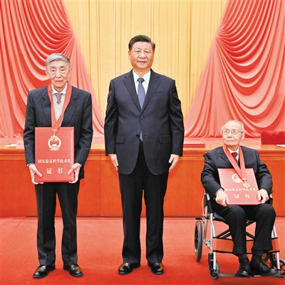 上午10时20分,大会在雄壮的国歌声中开始。在热烈的掌声中,中共中央总书记、国家主席、中央军委主席习近平首先向获得2020年度国家最高科学技术奖的中国航空工业集团有限公司顾诵芬院士和清华大学王大中院士颁发奖章、证书,同他们热情握手表示祝贺,并请他们到主席台就座。随后,习近平等党和国家领导人同两位最高奖获得者一道,为获得国家自然科学奖、国家技术发明奖、国家科学技术进步奖的代表颁发证书。