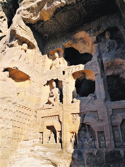 石质文物在世界上有很多。金字塔的基座实际上都是石头,狮身人面像也是在岩石上开凿出来的。由于碳酸盐,基座里面有很多溶孔,溶孔已经发生了溶解。嘉峪关长城的基座也看到了溶孔,在布达拉宫、云冈、桂林等多地也看到了。