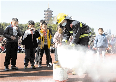 当日是全国消防日,各地开展消防安全宣传活动,增强人们的消防安全意识,提高应急避险能力。 新华社发(钟学满摄)