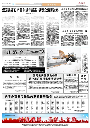 煤炭最高日产量创近年新高 保群众温暖过冬