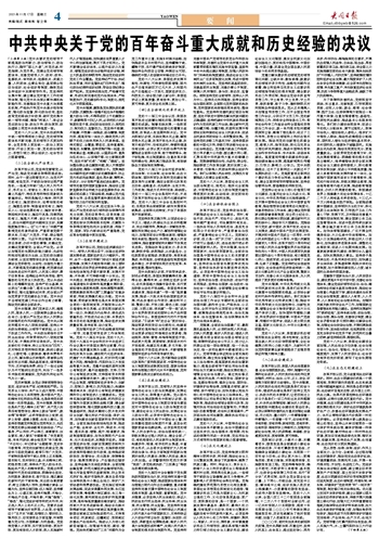 中共中央关于党的百年奋斗重大成就和历史经验的决议
