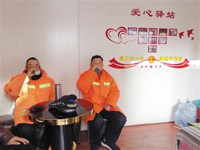 在广灵县文华街附近的一处环卫工休息室里,几名环卫工正在喝水、聊天。“以前冬天下雪时,只能就近找地方躲避,现在有了环卫工休息室,天冷了就进来喝杯热水,真是太好了,感谢政府对我们的关心和关爱。”一名环卫工人说。