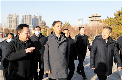 (上接第一版)要拿出“首善”的样子和处处争第一的拼劲,以党的十九届六中全会精神为指引,紧紧围绕全方位推动高质量发展的要求,进一步坚定信心、锚定目标,立足产业基础和比较优势,坚持强龙头、延链条、建集群,着力推动一二三产业联动发展。要坚持整体规划,突出产城融合,高水平抓好城市开发建设,高标准提升城市管理水平,高质量做好社会治理试点示范,全面提升城市中心区综合承载力和辐射带动力。要持续推进古城保护修复、营商环境优化、民生保障改善等工作,统筹抓好防风险、保安全、护稳定、促发展等工作,全力打好“十四五”开局之年收官战。