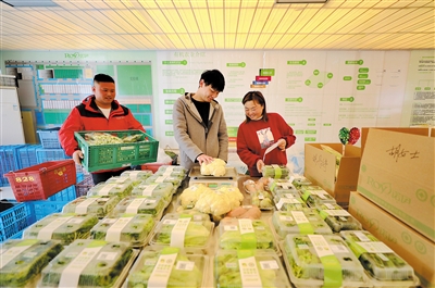 12月1日,在安徽省合肥市肥东县牌坊回族满族乡一家农业公司,当地农户在分拣包装蔬菜。