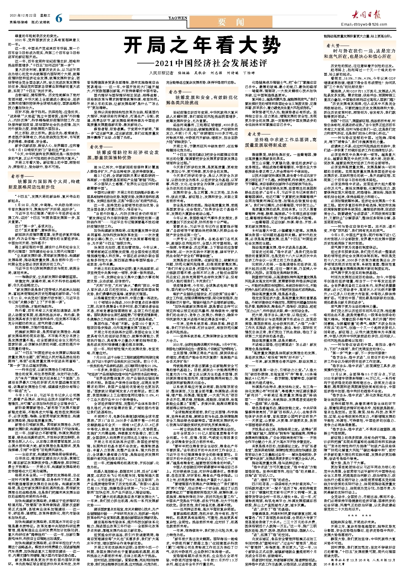 新征程上的很多探索,没有先例可循。正确认识和把握“实现共同富裕的战略目标和实践途径”“资本的特性和行为规律”“初级产品供给保障”“防范化解重大风险”“碳达峰碳中和”,面对许多新的重大理论和实践问题,发展共识更加凝聚,奋进号角格外嘹亮。