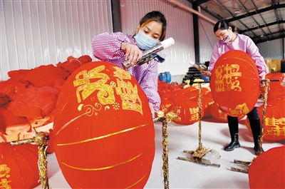 近年来,东三召乡依托当地传统灯笼制作技艺,结合市场需求,生产植绒灯笼、拉丝灯笼、传统宫灯等灯笼产品,吸纳村民在家门口就业增收。