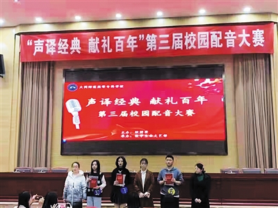 本报讯 (记者 解慧) 近日,大同师范高等专科学校第三届校园配音大赛在校图书馆报告厅举办。11位从初赛和复赛中脱颖而出的同学各显神通,大放异彩,展开了一场精彩纷呈的比拼。