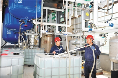 12月22日,位于左云县经济技术开发区化工园区的大同星汉化工有限责任公司车间里,工人们正在进行非离子投料作业。该公司精细化工助剂项目总投资3亿元,目前已完成投资1.1亿元,建成后可实现利税2000余万元。项目产品共20多个系列300多个品种,广泛应用于纺织、化纤、医药等领域。