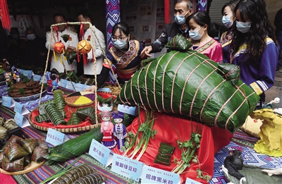 当日,广西南宁市举办首届水街年粽民族小吃品鉴会,由社区居民亲手制作的各种小吃集中亮相。 新华社记者 陆波岸摄