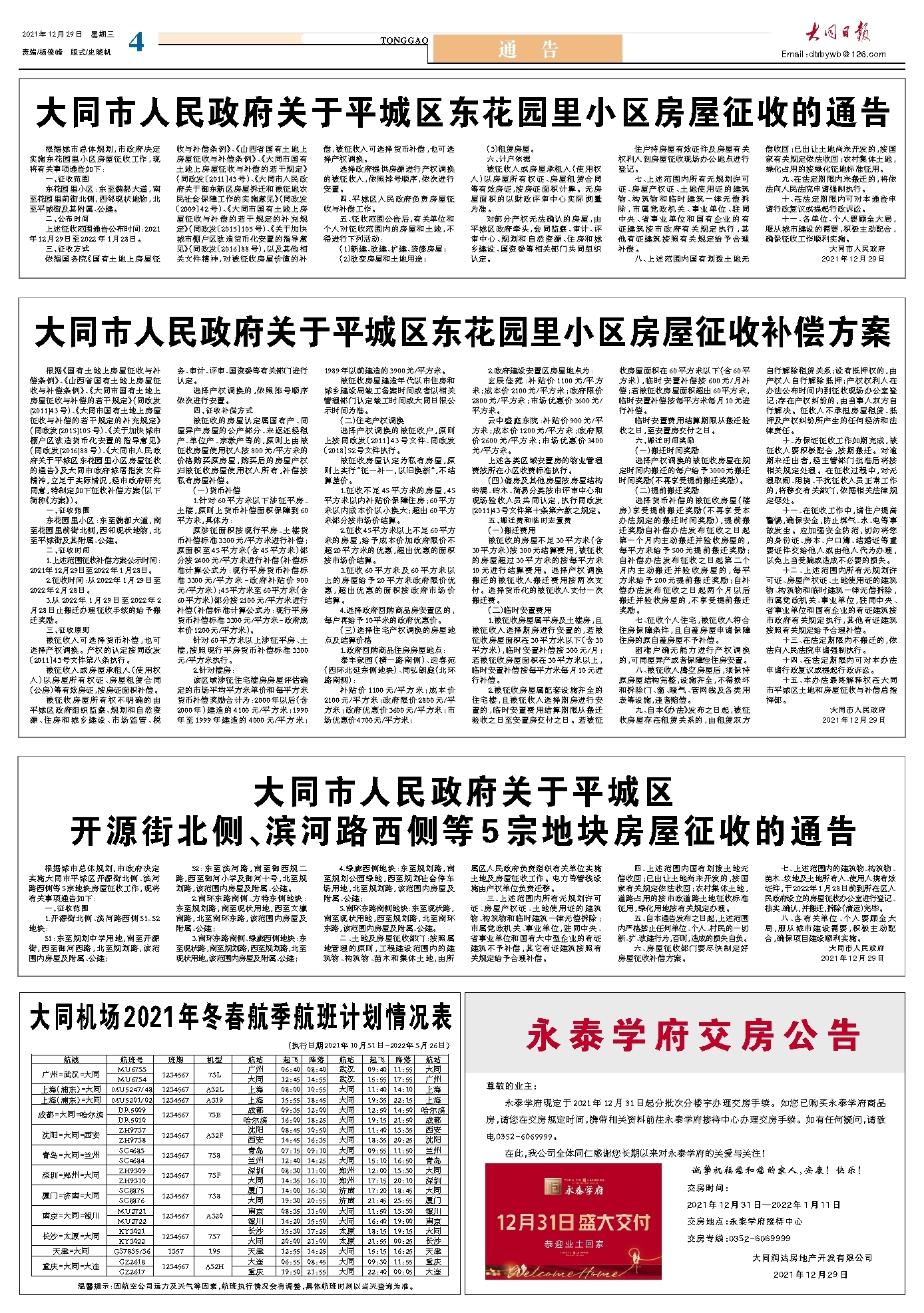 大同市人民政府关于平城区东花园里小区房屋征收的通告