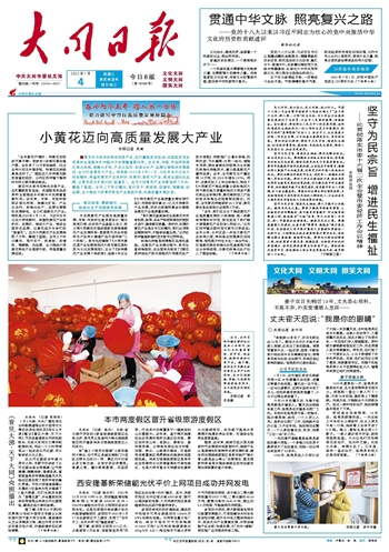 “去年,我们区出台了推进黄花产业高质量发展的10条措施,每一条都有很强的针对性,更加坚定了我们做大做强黄花产业的信心和动力。”云州区西坪镇瓜园村党支部书记李成说。去年以来,云州区进一步加大黄花产业扶持力度,特别是在加强黄花田间管理、规范提升村社乡社一体合作社、打造黄花绿色标准化示范基地等方面出台扶持政策,为黄花标准化生产注入了强劲动能。 (下转第四版)