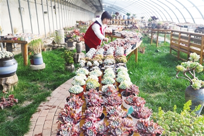 1月4日,河北省唐山市丰润区七树庄镇七树庄村农民在大棚里管护多肉植物。