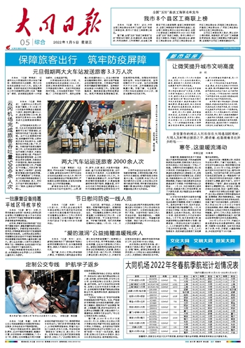 “前往大同南站的同学,请有序排队乘车,出示行程码和健康码,佩戴好口罩,并自觉保持1米间隔距离。”1月4日7时,多辆公交车停靠在大同大学御东校区和新平旺校区门口,等待即将返乡的学生们。“我们好多同学都是外地人,从学校转乘到高铁站,带着大包小包十分麻烦,打车又太贵。听说学校有‘寒假返乡’定制公交,家人放心了许多。定制专线公交让我们回家的路温暖许多,太贴心了。”正在排队等待上车的陈同学说。
