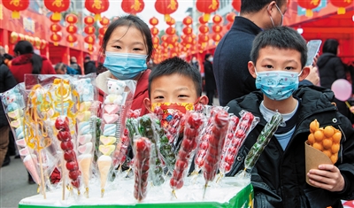 春节临近,在湖北省崇阳县白霓镇,人们走上街头选购零食、特产、春联等年货,迎接新春。
