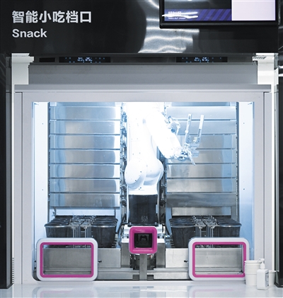 北京冬奥会主媒体中心创新推出“智慧冬奥”的媒体餐厅。这里的智能化制餐、供餐服务体系,不仅能提高供餐效率,在疫情防控的环境下,还可以最大限度地节省人力,避免过多的人员交互。媒体餐厅在赛时将启动24小时运行,提供中餐、西餐、快餐等各类餐饮选择。图①为1月10日拍摄的北京冬奥会主媒体中心媒体餐厅内景。图②为1月10日,就餐人员在媒体餐厅体验智能送餐服务。图③为1月11日拍摄的媒体餐厅智能小吃档口。