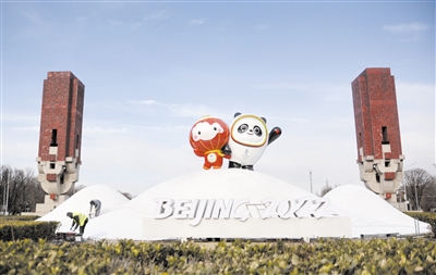“冰墩墩”“雪容融” 亮相北京中轴线