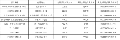在大同市人民政府公布的《大同市人民政府关于古城内棚户区改造及环境综合整治房屋征收的通告》《大同市人民政府关于北关铁牛里片区棚户区改造房屋征收的通告》《大同市人民政府关于平城区第三十三小学校周边危房棚户区改造二期工程房屋征收的通告》《大同市人民政府关于“消极空间”改造、“大同蓝”保卫战城区范围内平房、土楼房屋征收的通告》所属区域内,有部分房屋存在已买卖但未办理产权变更登记的情况,为了合理办理房屋征收安置手续,现将涉及此类情况的房屋信息进行公示,若对公示房屋情况存在异议者,可在本公告登报后15日内向被征收房屋所属辖区街道办事处提出书面异议。若公告期满无异议的,我部将按照相关政策办理房屋征收安置手续。