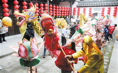 1月19日,在浙江省湖州市德清县乾元镇新时代文明实践站,孩子们在学习舞龙。寒假期间,各地学生参加多彩文体活动,增长知识、强健体魄,乐享假期生活。 新华社发(倪立芳摄)