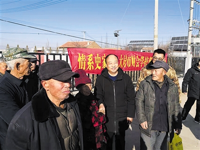 本报讯(记者 闫春平)时值腊月,年味渐浓。近日,大同市财会学校校长张世发、副校长郭文一、白永琦,办公室副主任谢耀鹏等一行再次走进结对帮扶村——天镇县张西河乡史家夭村,为170户村民送去春节慰问品和新春祝福。