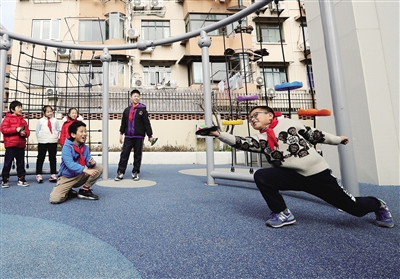 1月18日,在上海市徐汇区凌云街道凌云新村社区,放假的孩子们在一起玩耍。
