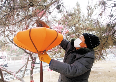 春节将至,节日的喜庆气氛日益浓厚。1月21日,记者在古城内看到,工人们正在忙着悬挂灯笼。各种灯笼、串灯,扮靓了城市街头,让市民在“灯光秀”中感受浓浓的年味。