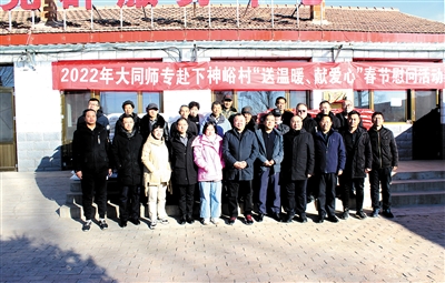 本报讯(记者 解慧)新春将至,岁寒情深。近日,大同师范高等专科学校党委书记岳艺斌、校长裴忠泽带领校党务工作者一行13人,赴定点帮扶村阳高县下神峪村,开展“迎新春、送温暖、献爱心”走访慰问活动,提前为村民送上新春祝福,带去学校的关怀和温暖。