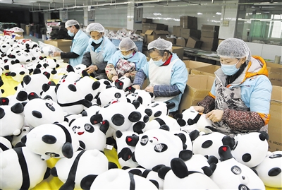 冬奥吉祥物“冰墩墩”成新晋“顶流”,从大年初五开始,位于福建省泉州晋江市的一家特许生产商提前复工,调配工人和设备加紧生产,以满足各大渠道需求。