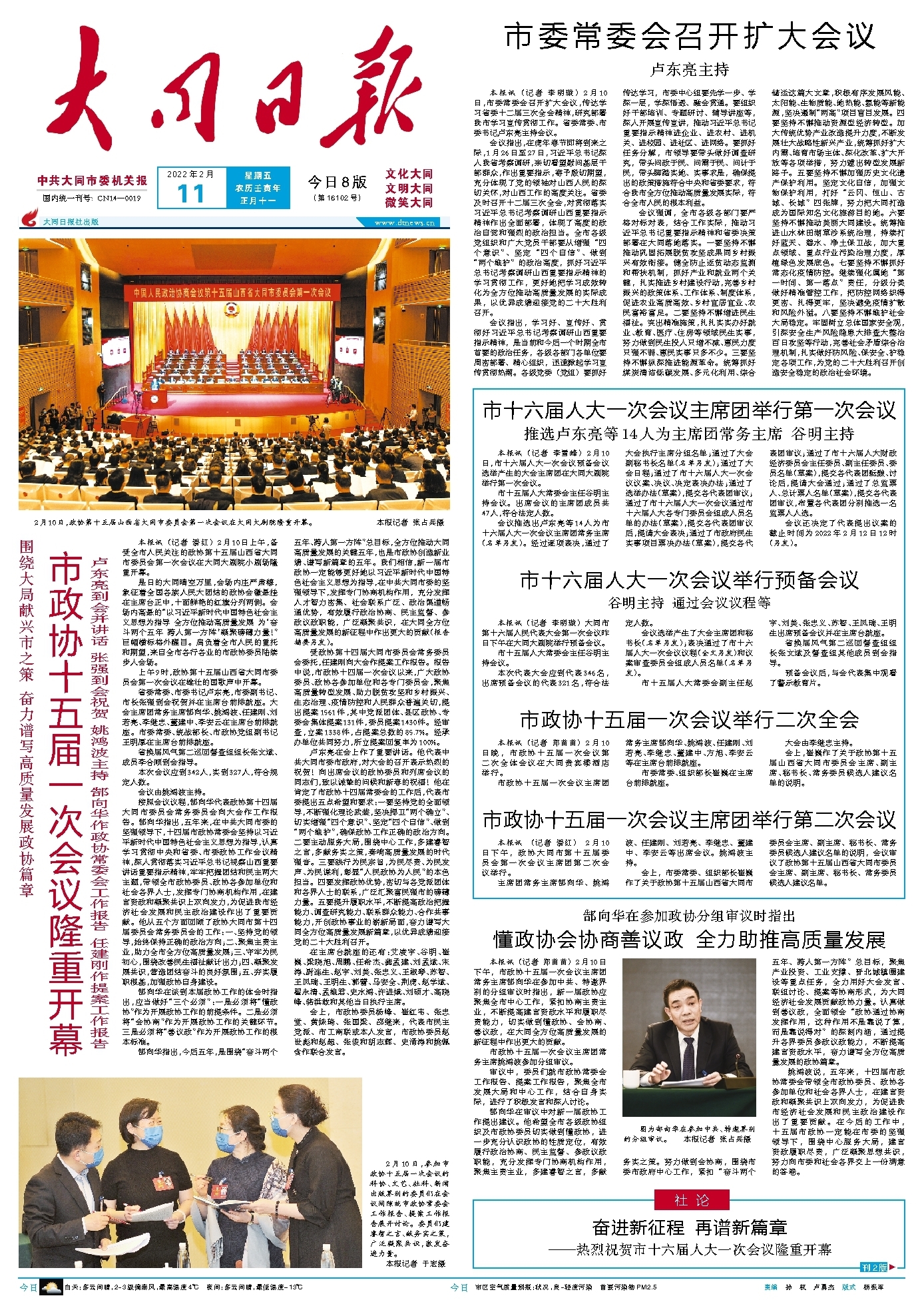 围绕大局献兴市之策 奋力谱写高质量发展政协篇章~~~卢东亮到会并讲话 张强到会祝贺 姚鸿波主持 郜向华作政协常委会工作报告 任建刚作提案工作报告