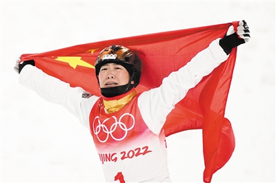 新华社北京2月14日电 (记者 王恒志 张泽伟) 31岁的冬奥会“四朝元老”徐梦桃终于在北京圆梦,她14日夺得北京冬奥会自由式滑雪女子空中技巧金牌。这是中国代表团在本届冬奥会上获得的第五枚金牌,追平了中国代表团冬奥会金牌数最佳战绩。两位“00后”苏翊鸣和谷爱凌也双双晋级各自项目的决赛,将在15日肩负起创造历史最佳战绩的重任。