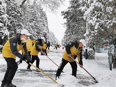 本报讯 (记者 锦秀) 2月13日,一场春雪降临我市。以雪为令,大同体育总会志愿者服务队、文明大同志愿服务队、大同市人防越野一族救援队立即组织开展清扫道路积雪志愿服务活动。