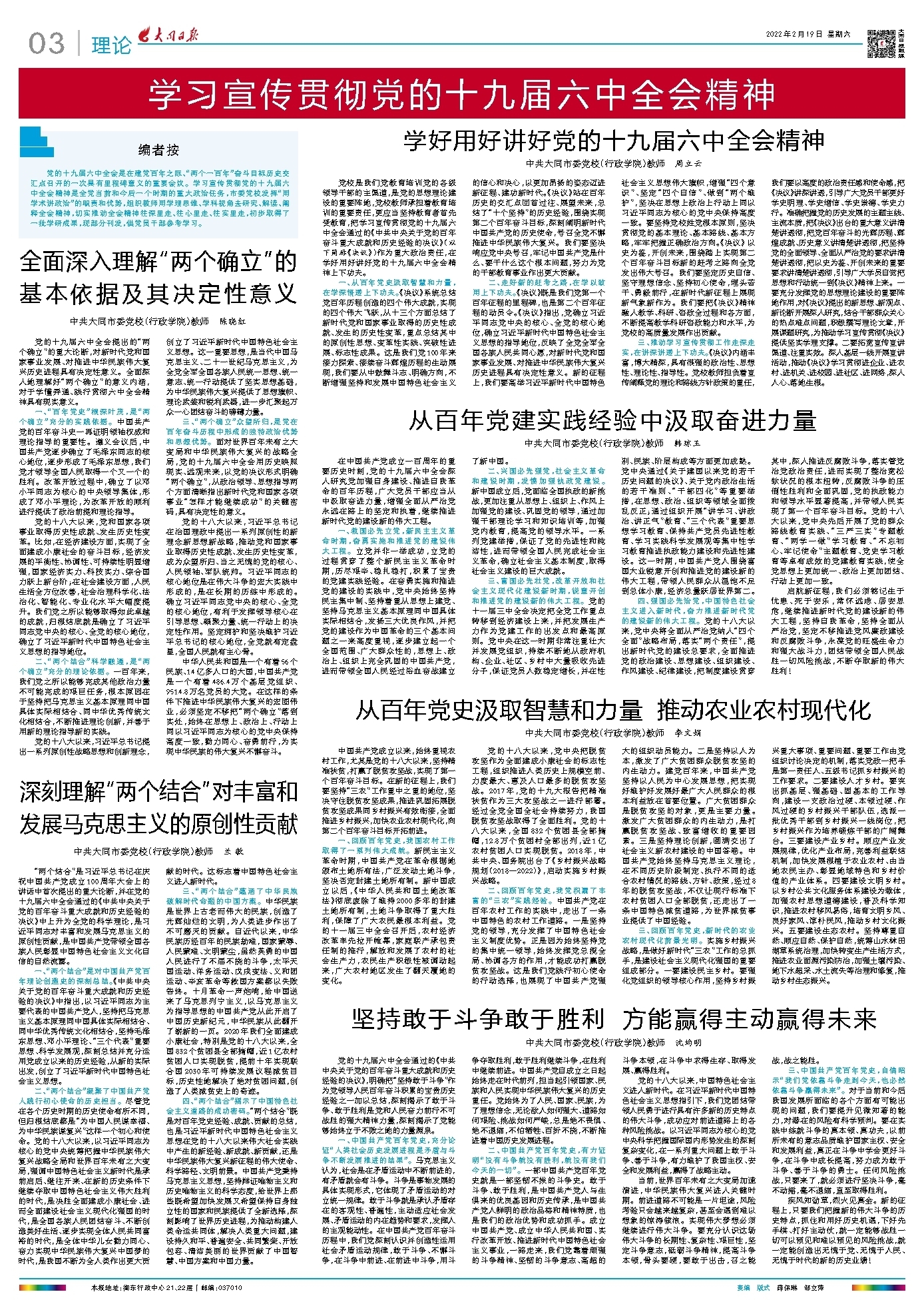 学好用好讲好党的十九届六中全会精神