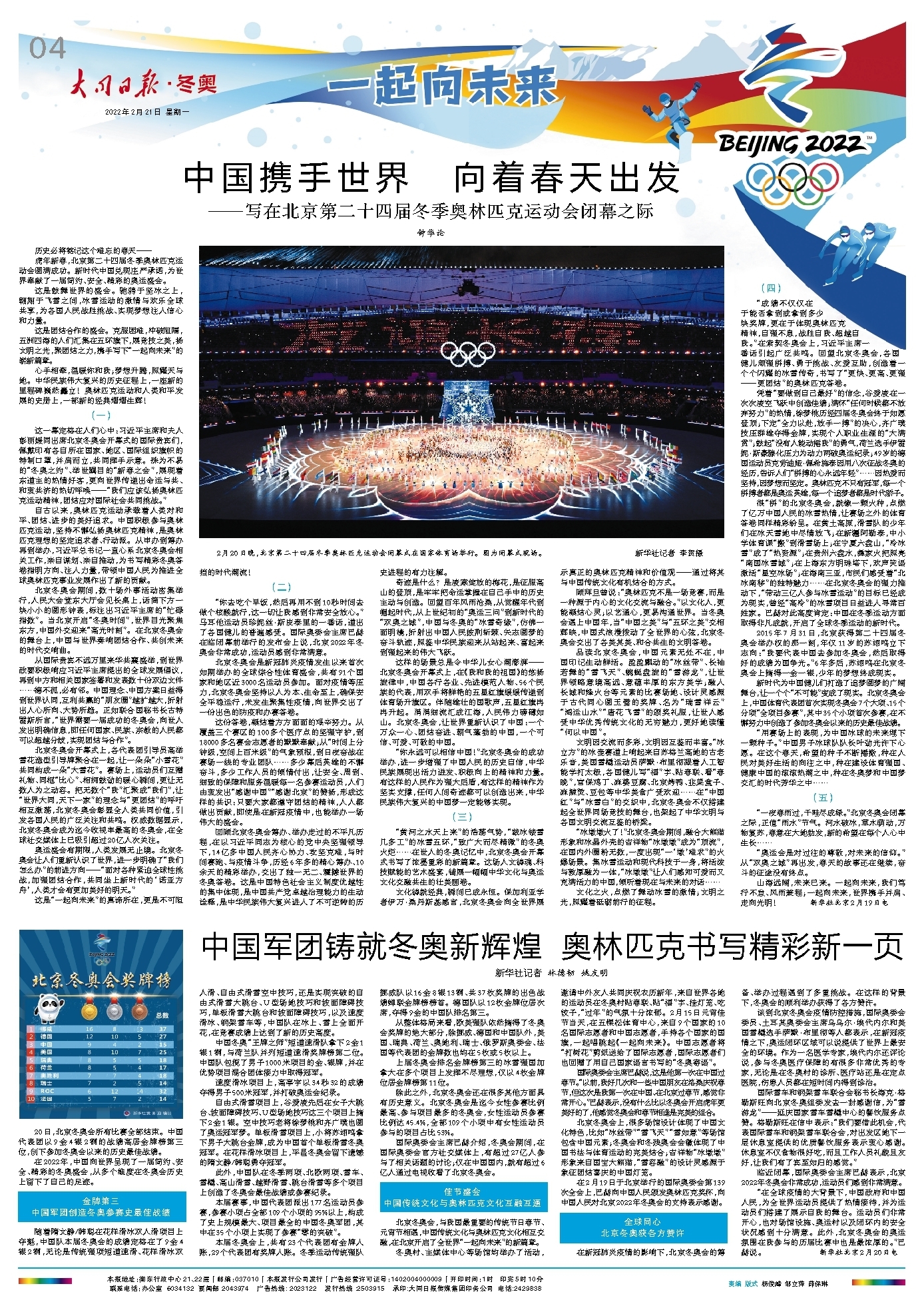 中国军团铸就冬奥新辉煌 奥林匹克书写精彩新一页