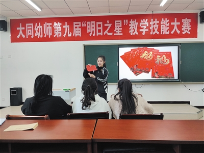 本报讯(记者 解慧)为贯彻落实“以赛促教、以赛促学”的职教理念,强化学生专业技能,提高人才培养质量,积极搭建多样化的技能训练平台,努力培养知识型、技能型、创新型人才,日前,大同市幼儿师范学校举行第九届“明日之星”教学技能大赛。