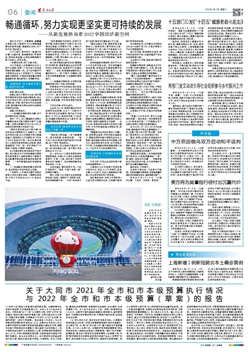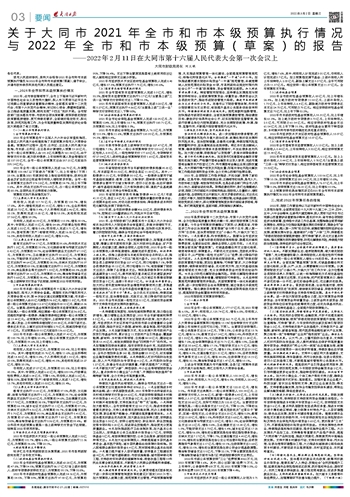 关于大同市2021年全市和市本级预算执行情况与2022年全市和市本级预算(草案)的报告