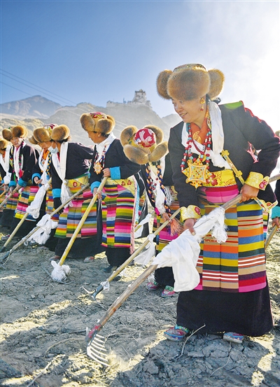 3月16日,西藏山南市昌珠镇门中岗社区举行春耕仪式。当日,西藏各地举行一年一度的春耕仪式。春耕在西藏农民的眼中,是一年之中最为隆重的农事活动,各地举行盛大的春耕仪式,祈福一年的丰收。 新华社记者 张汝锋摄