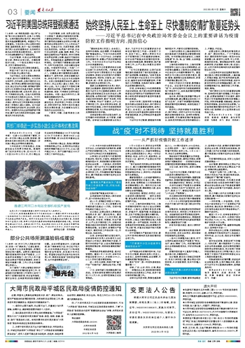 ~~~—习近平总书记在中央政治局常委会会议上的重要讲话为疫情 防控工作指明方向、提振信心