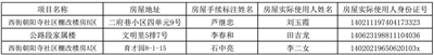 在大同市人民政府公布的《大同市人民政府关于古城内棚户区改造及环境综合整治房屋征收的通告》、《大同市人民政府关于大同市南文明里周边环境综合整治工程及文化里平房房屋征收的通告》所属区域内,有部分房屋存在已买卖但未办理产权变更登记的情况,为了合理办理房屋征收安置手续,现将涉及此类情况的房屋信息进行公示,若对公示房屋情况存在异议者,可在本公告登报后15日内向被征收房屋所属辖区街道办事处提出书面异议。若公告期满无异议的,我部将按照相关政策办理房屋征收安置手续。