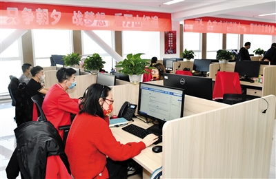近年来,市委、市政府抢抓发展数字经济的机遇,大力扶持数据呼叫、标注、清洗等服务产业,吸纳更多年轻人聚集大同就地就业。京东物流(大同)客户服务中心去年10月揭牌运营以来,延续传统实体企业重实业资本、重人力资源的经营发展模式,计划建成座席3000席,目前已实现就业1100人,为全市稳增长、稳就业提供了坚实的实体产业支撑。图为该中心员工正在为客户提供服务。 本报记者 李冬宾摄