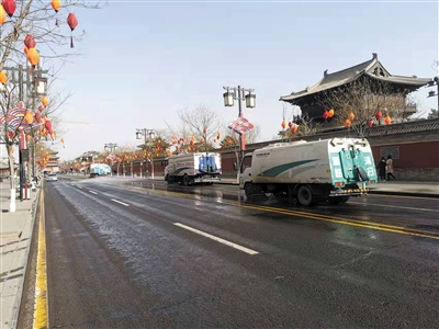 大同古城是大同重要的文化标志,平城区环卫服务中心今年进一步推进“古城一街一品”特色化,塑造一条街道,形成一个特色,树立一种品质,针对古城内道路属性开创保洁新模式,全面开展道路机械清扫清洗、人工保洁、绿化带保洁、果皮箱收集擦洗、野广告清除、垃圾上门收集等作业。