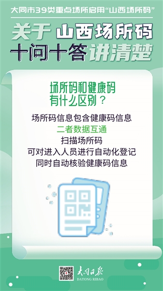 为高效精准做好常态化疫情防控工作,我市在医疗机构、商场超市等39类重点场所启用“山西场所码”。