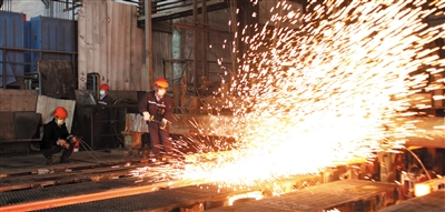 山西同德兴华特钢有限公司不断加大技改投入力度,提升工艺水平,优化生产工序,压钢时间达标率保持在95%以上,进一步缩小了压钢时间、减少了生产过程中的热能损耗,有效提高了企业效益。 图为4月8日在生产车间内,工作人员正在高温抢修。