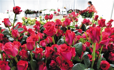 时下,位于云南省丽江市古城区开南街道贵峰社区的丽江现代花卉产业园里玫瑰花、马蹄莲绽放,工人忙着采收供应市场。目前,园区每天出产马蹄莲1万支、鲜切玫瑰2万支,产品销往国内外市场。园区吸纳附近居民50余人务工,拓展了其增收渠道。图为4月11日,在云南丽江现代花卉产业园里,工人在整理玫瑰花。
