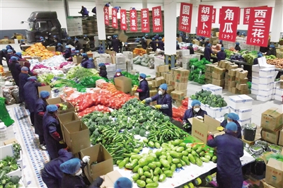 3月26日以来,吉林省启动联保联供机制,紧急调运周边县市物资支援长春、吉林等地,保障重点地区防疫生活物资供应。吉林省各地市迅速行动起来,调运、分拣、打包、运输……每天,近千吨“蔬菜包”从各地汇聚过来,支援长春、吉林两市护好“米袋子”“菜篮子”“果盘子”。 新华社发