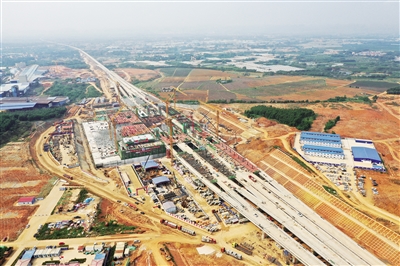 4月12日,在贵南高铁南宁北站建设现场,中铁建设集团工人在施工(无人机照片)。当日,贵南高铁南宁北站站房框架柱开始进行混凝土浇筑作业,车站主体工程建设正式启动。贵南高铁站房工程建设正式全面拉开。据了解,贵南高铁(贵州贵阳至广西南宁)设计时速350公里,是我国“八纵八横”高速铁路主通道包头至海口通道的重要组成部分。