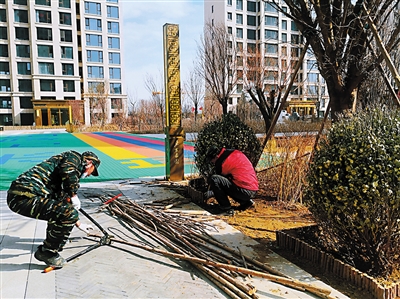 天气转暖,春暖花开,植物的生长正进入旺盛阶段。为确保绿化植物健康生长,连日来,东方家园华鸿物业员工拆除了为防御严寒而为树木搭建的“防护衣”,开启了春季树木培土、浇灌、剪枝、清理杂草等爱绿、护绿的美化工作,为业主营造清新舒适的绿色生态环境。