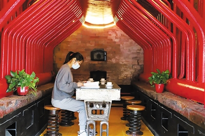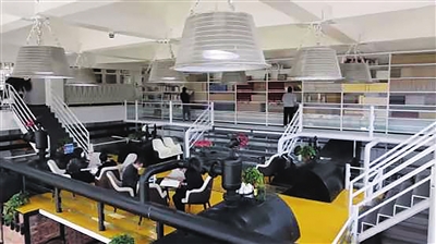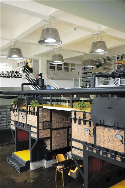 走进云冈图书馆,老旧的锅炉房早已变了模样:储煤仓变成了书库,烧煤炉掏空用作咖啡吧,炉顶位置搭建成阅读区,馆内书架、栏杆、楼梯多由原锅炉房内废弃金属机具改造加工而成。