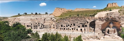 第6窟是云冈石窟最精华的洞窟,它的中心塔柱是四边形,分上下两层,从石雕形制、结构及其布局内容,雕刻精美都是罕见的。它存在的问题是底层后壁基座部位呈高低不一的塌陷层;佛龛内外雕像风化残留部分遗存;塔身四壁接近地面的基石剥蚀风化程度不同。对上述问题剔凿风化层,用环氧树脂胶泥粘接垒砌料石修补,适当地雕琢修整。对底层塔柱存有的裂隙,应用前面方法进行灌浆粘接加固处理。方形塔柱的第二层石雕建筑和石雕佛像,布局的四个拐角处,精雕有面向东、南、西、北四个方位的四座小型塔柱。在四个小型塔柱中间,也就是方形中心塔柱的二层中部,在抱厦内雕有四位站立的石佛。这种布局结构在国内十分罕见。这一层的石雕没有残缺,只有从一层延伸上来的裂隙和小型塔雕身上的局部裂纹。我们配制黏度比较小的改性环氧树脂进行压力灌浆粘接加固,剔凿附加物做旧。