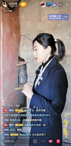 该院网络中心负责抖音直播的张佳琦告诉记者,抖音直播推出前,他们做了大量前期准备工作,在文案策划、内容呈现等方面进行双向调研,先看国内外同行是怎么做的,再去了解观众的关注点和兴趣点,然后借助云冈的资源优势,邀请客服中心的金牌导游和研究院的专家、学者出镜,以全新的视角艺术呈现和深度解析云冈石窟,力争使每期直播都具有唯一性和权威性。