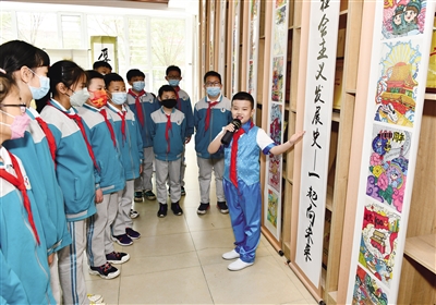 丰富校园文化生活,凸显艺术教育特色,构建人文校园。5月9日,平城区十四校集团校启动了校园文化艺术节系列活动,以“双减之下 艺展风采”为主题,在为期一个月的时间里,陆续开展艺术特长展演、“四史”教育漫画展等各类丰富多彩的主题活动,让同学们在活动中陶冶高尚情操,体验合作与创造,体会成功与欢乐。图为同学们正在参观“四史”教育漫画展。