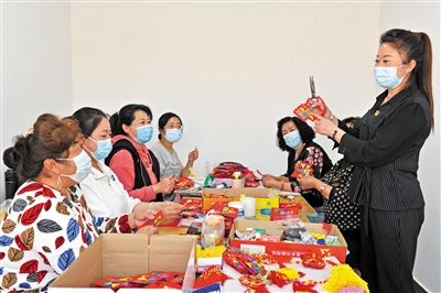 5月16日,平城区小南头街道西谷庄村的村民正在村活动室内赶制各类端午符、花绳手链等传统的端午节“吉祥物”。随着端午节临近,在平城区小南头街道西谷庄村,妇女们正在抓紧赶制平安香包、端午绳、端午符等手工制品,既传承保护了民俗,又结合地方特色开辟新的增收途径。 本报记者 于宏摄